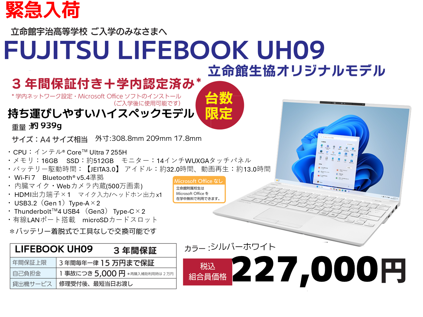 学校特別価格:39,000円(税込)【3年間特別保証付】