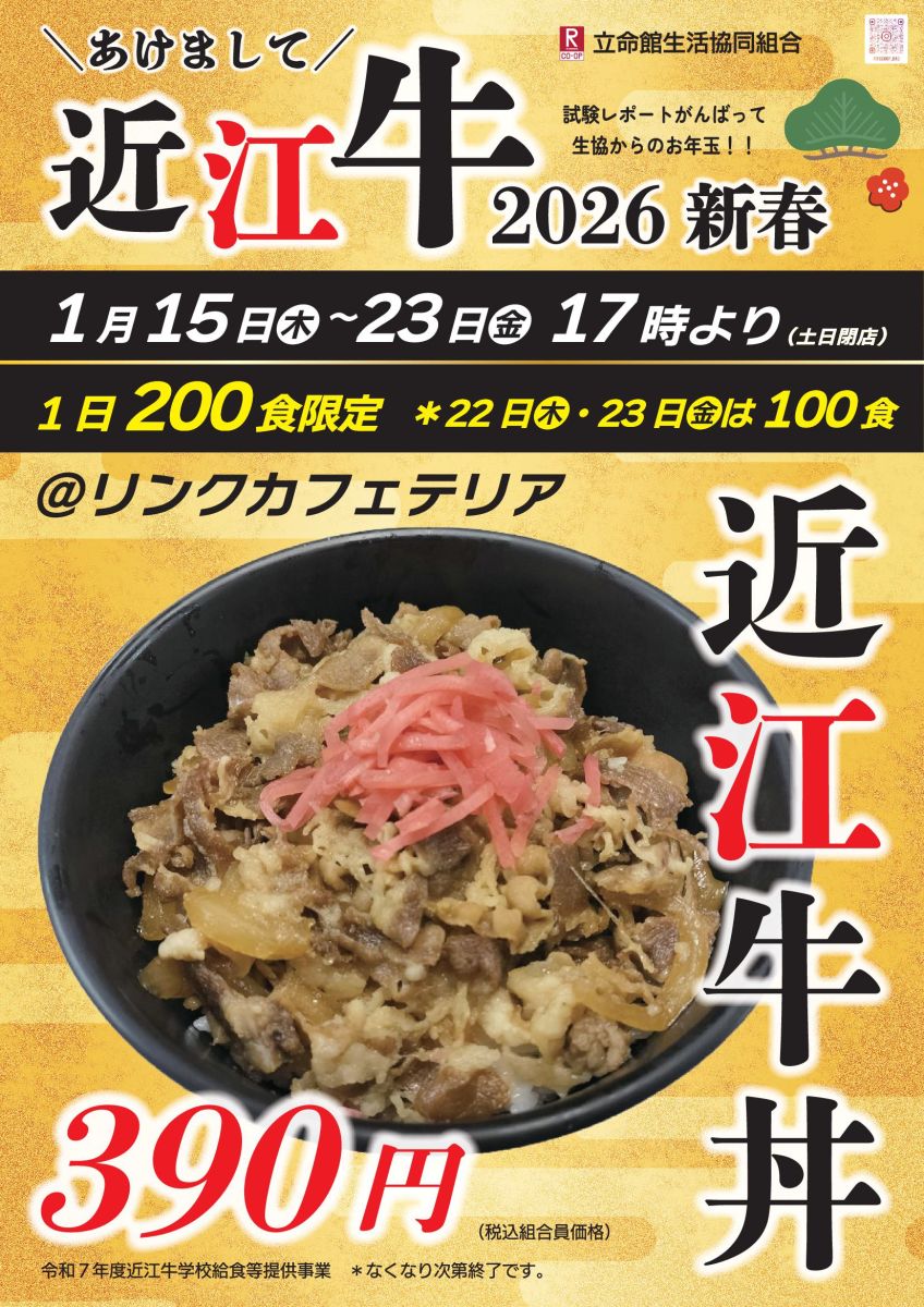 12月に実施した近江牛丼を1月も夕食限定・食数限定で提供いたします。
