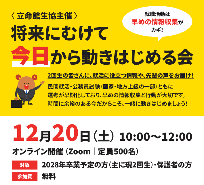 「2026年 大学生協オリジナル 公務員試験対策講座 ガイダンス(1月~3月)」開催!
