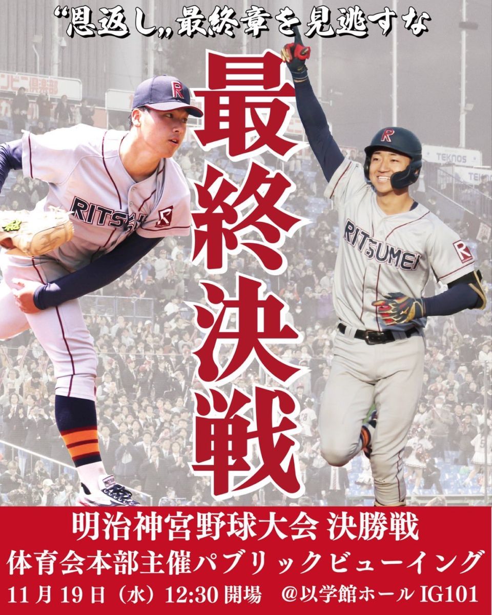 第56回明治神宮野球大会にて、立命館大学硬式野球部が初の決勝進出を決めました。