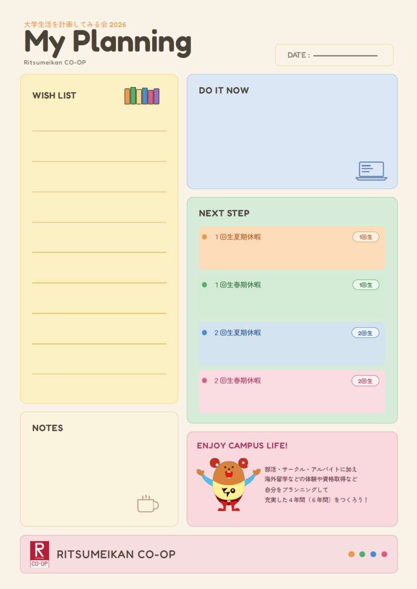 立命館生協では、これからの皆さんの学びと成長を応援しています。