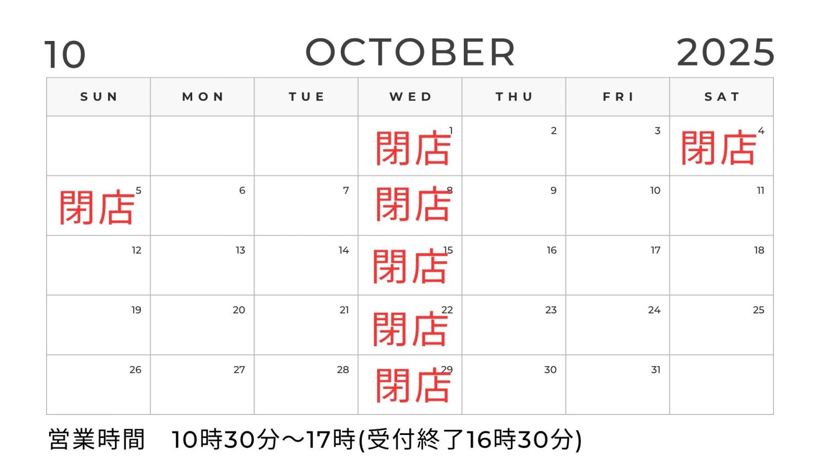 【衣笠住まいさがしセンター】10月営業カレンダー