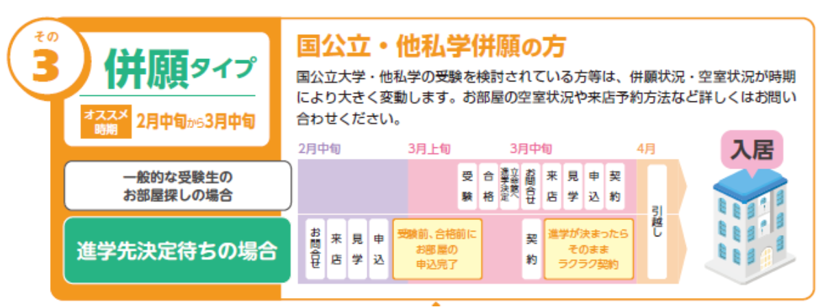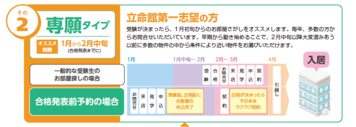 2月17日もしくは2月20日の合格発表日まで「合格前予約」できる物件があります。