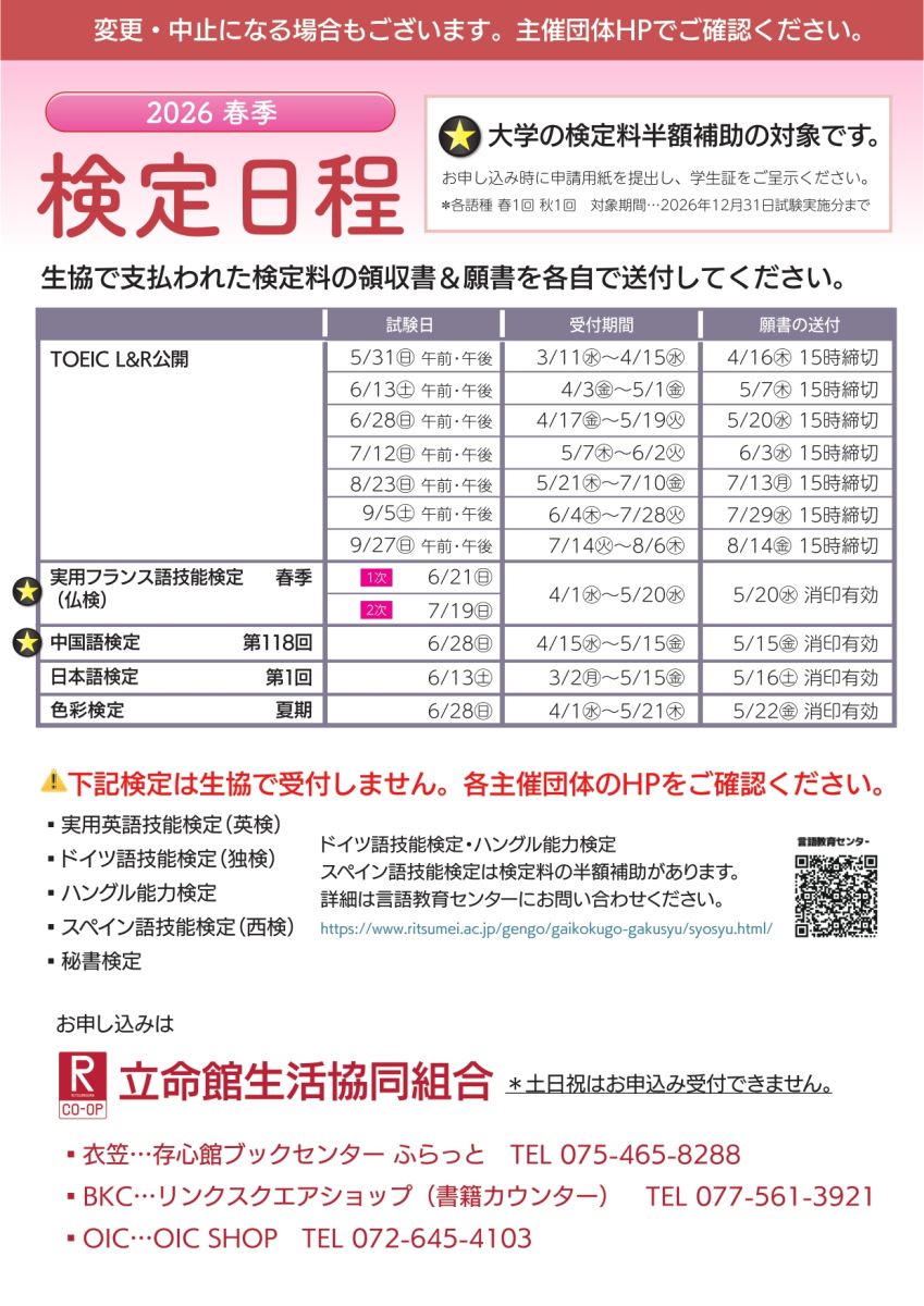 2026春季 検定日程